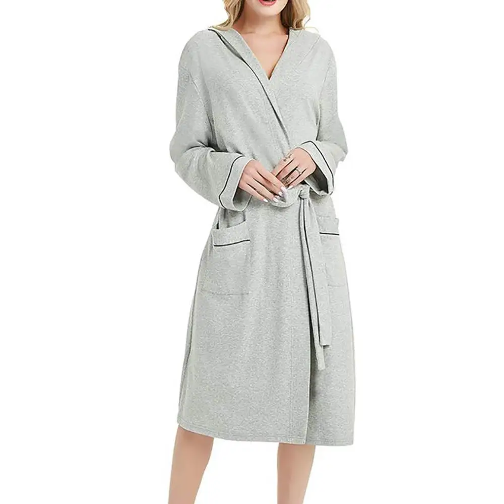 Good Price for Women pajamas spring Summer Solid Color Cotton Pajamas Nightgown Long Lingerie Bathrobe With Belt R